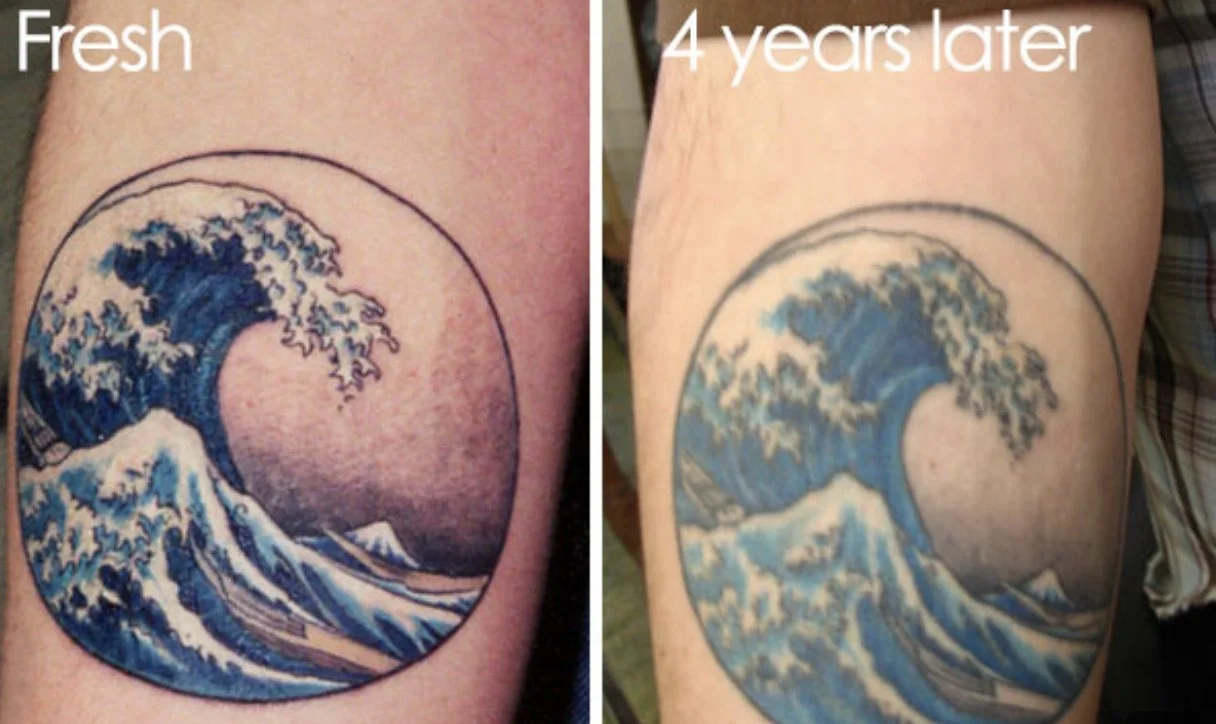 Sun exposure. UV light breaks down ink particles faster than almost anything else. One uncovered beach vacation can age a tattoo more than five careful years.