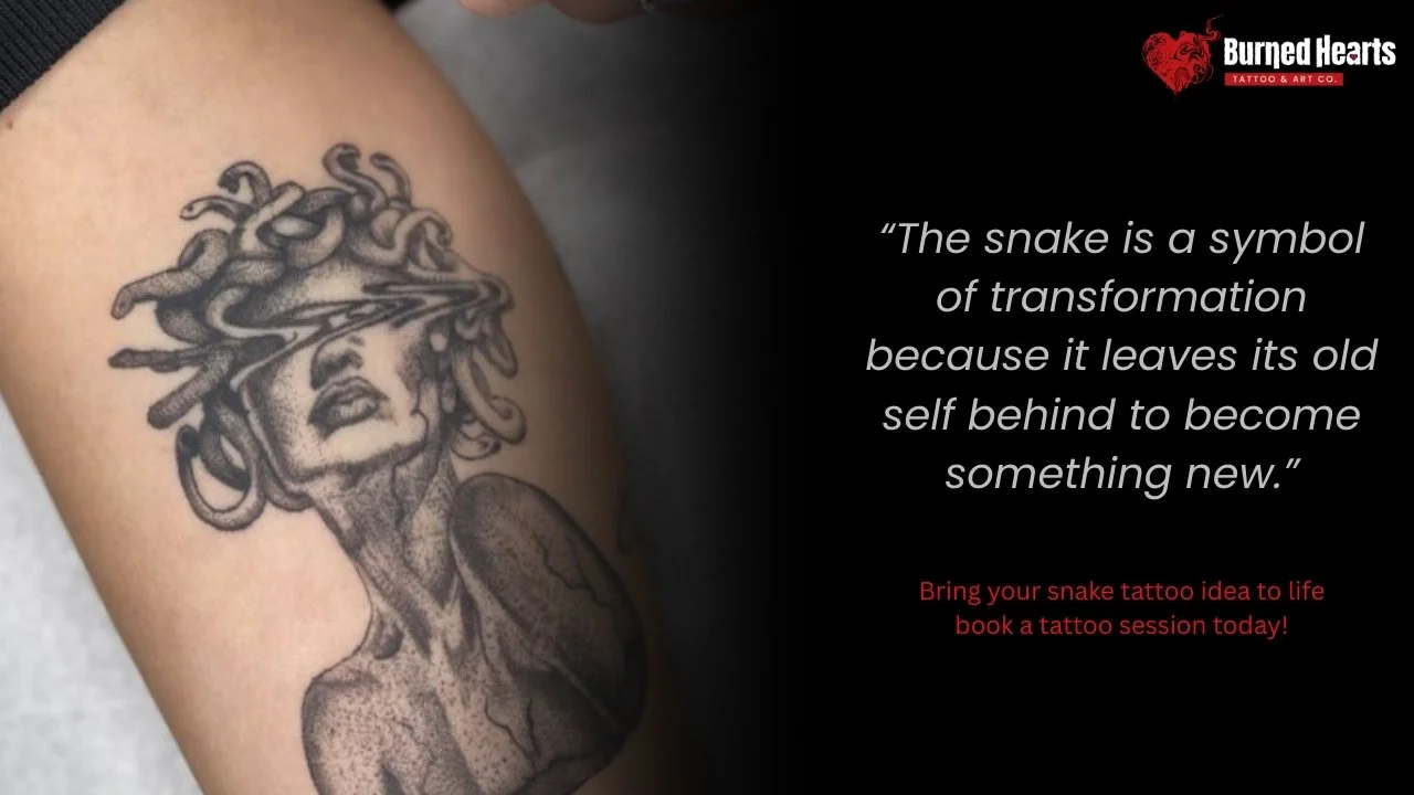 Snake tattoos offer a fascinating blend of symbolism and artistry, representing personal growth, transformation, and the mysteries of life. Whether you choose a subtle, minimalist design or a bold, detailed cobra, each tattoo tells a story unique to you. Thoughtful consideration of style, placement, and cultural meaning ensures your tattoo resonates on both a personal and visual level. When you’re ready to create a design that truly reflects your journey and individuality, take the next step and book a tattoo session to turn your vision into a lasting work of art.